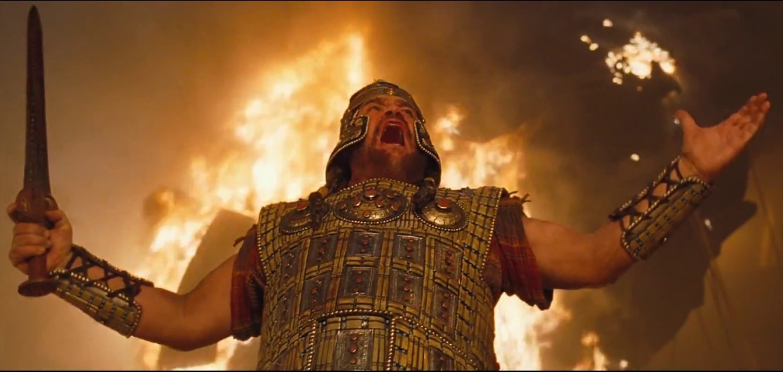 Ainsi que la flamme désastreuse dévorait les forêts, de même sous l'impétueux Ménélas tombaient les têtes des Egyptiens en fuite. Les chevaux entrainaient les chars vides à travers les rangs et regrettaient leurs conducteurs qui gisaient contre terre, maintenant plus attirants pour les oiseaux que pour leurs femmes. A cette offensive terrestre s'ajoutait une victoire babylonienne sur les flots, réduisant à rien la force navale de Pharaon.