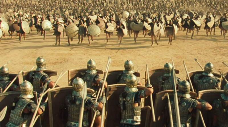 Comme Hephaistos frappant sans se lasser sur une enclume, le sort ne cessait de s'acharner sur le Roi Agamemnon. Ses tracas avec le lion géant, se transformaient en une inquiétude sans fin quand, à l'horizon, il vit un nuage de poussière s'élever. Une grande armée était en marche contre lui. Ce qui lui amena sur le visage un rictus d'énervement, car la fin de l'année promettait d'être animée pour Agamemnon, pas un instant épargné. L'armée qui s'approchait était menée par Eudore et était composée des Myrmidons de Phthie. Le combat qui allait suivre allait être digne d'un duel de Titans !
