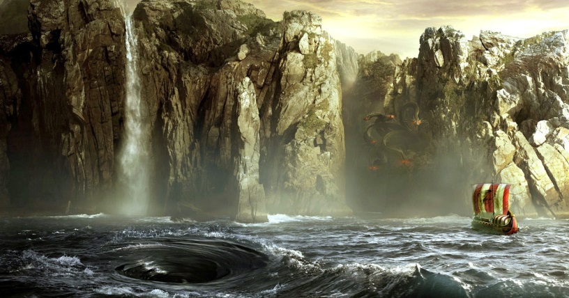 La mer inspirait depuis toujours attirance et répulsion aux hommes, mais aussi une peur des forces de la nature et des monstres dissimulés dans ses profondeurs. Après avoir tenu le cap à travers l'immensité maritime, les matelots de Ménélas ayant conquis Ortygie, savaient qu'ils devaient maintenant affronter deux périls en contournant la Sicile. Le rocher de Scylla, où guettait un monstre à six têtes, et l'écueil de Charybde habité par une déesse engloutissant puis recrachant les flots. Un courant violent amplifiait les difficultés et, lorsque la flotte d'Arcésilas de Sparte tenta de franchir le détroit, elle fut repoussée. Les Spartiates durent leur salut à un retour précipité à Ortygie.