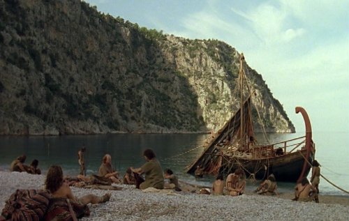 A leur tour, les Phéniciens mirent à la voile leurs plus solides vaisseaux et cinglèrent prestement vers les terres d'Afrique. Aidés par Shadrapha leur Dieu sauveur, les marins du Roi Zimrida évitèrent judicieusement les hauts-fonds de la grande Syrte, le kraken, la tempête, les sirènes et tous les écueils de la Méditerranée, pour arriver au Cap Bon. Là, le long d'une côte avare en bons points d'ancrage et balayée par des rafales de vents insidieux, la présence d'une large anse protégée apportait une garantie de prospérité. Les Phéniciens s'installèrent au pied des palmiers et d'une vigne généreuse, pour fonder Qart-Hadašt, "la nouvelle ville".